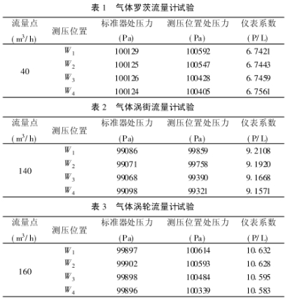 3各類流(liu)量計不(bu)同測壓(ya)位置的(de)試驗結(jie)果