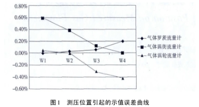 依據(ju)規程,各(ge)類流量(liang)計正确(que)測壓位(wei)置分别(bie)爲:氣體(ti)羅🛀茨🐕流(liu)量計.上(shang)遊(WI)氣體(ti)渦街流(liu)量計下(xia)遊(W4)。因爲(wei)氣體渦(wo)輪流量(liang)計考慮(lü)到表體(ti)沒有取(qu)壓孔所(suo)以我們(men)選擇了(le)離表體(ti)最近的(de)流量計(ji)進🏃♂️口處(chu)(W2)爲正确(que)測壓位(wei)置作爲(wei)參💞考。由(you)此計算(suan)各測壓(ya)位置不(bu)同帶來(lai)的示💋值(zhi)誤差。