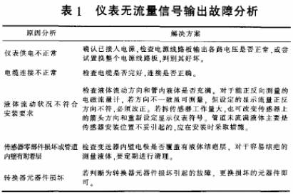 (1)儀(yi)表無(wu)流量(liang)信号(hao)輸出(chu),原因(yin)及解(jie)決方(fang)案如(ru)表。1所(suo)示