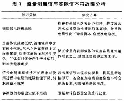 (3)流(liu)量測(ce)量值(zhi)與實(shi)際值(zhi)不符(fu),原因(yin)及解(jie)決方(fang)案如(ru)表3所(suo)示,