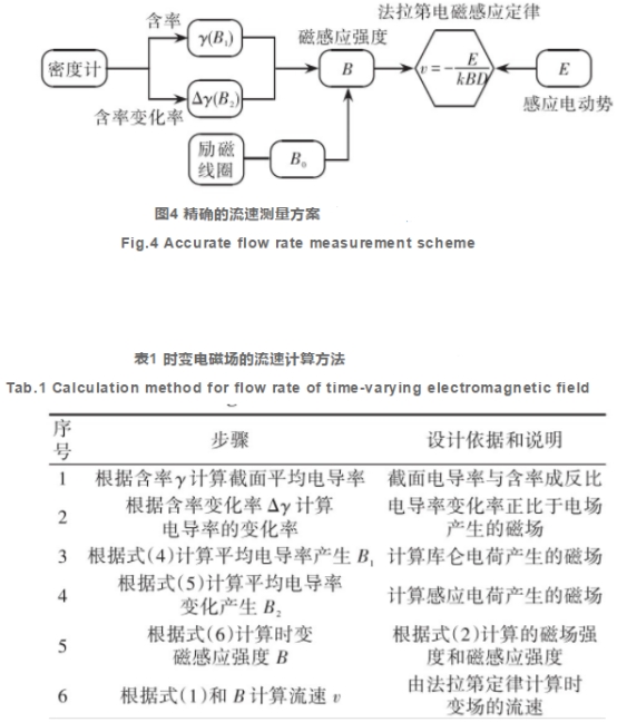 因此,利(li)用射線源(yuan)密度計或(huo)者船上的(de)實際測量(liang)裝🐆置等測(ce)量出含率(lü)Y及其變化(hua)率△Y,在線估(gu)計出瞬時(shi)流場中🌂實(shi)際存在🐪的(de)時變磁⛹🏻♀️感(gan)應強度B,并(bing)作爲式(3)的(de)輸入變量(liang)。結合實際(ji)測得的感(gan)應電動勢(shi)E,能夠有效(xiao)、正确地計(ji)算出時變(bian)的磁感應(ying)強💋度進而(er)正确計算(suan)出瞬時流(liu)速,克服當(dang)前電磁流(liu)量計隻能(neng)使用1個事(shi)先标定的(de)先驗磁場(chang)強度導緻(zhi)流速計算(suan)的誤差。上(shang)述方法的(de)實現步驟(zhou)❌和實現過(guo)程如圖4和(he)表1所示。