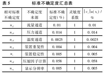分析(xi)渦輪流(liu)量計的(de)數學模(mo)型(4)可以(yi)得出,影(ying)響測量(liang)誤⭐差⛱️的(de)主要因(yin)素來自(zi)于輸入(ru)量f、P、T、Z。标準(zhun)不确定(ding)度彙總(zong)如表5所(suo)示。