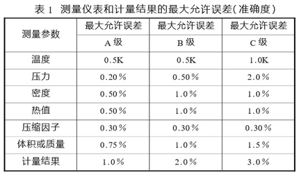國(guo)際建議中(zhong)将計量站(zhan)分爲A、B、C三個(ge)等級,對不(bu)同的流量(liang)規模配備(bei)的二次測(ce)量儀表要(yao)求不同。該(gai)建議适用(yong)!于流量等(deng)于或大于(yu)100m/h運行壓力(li)不低于0.2MPa的(de)情況。它對(dui)熱值測量(liang)、測溫、測壓(ya)、取樣以及(ji)包括指示(shi)、打印、.存儲(chu)、轉換和積(ji)算等系統(tong)部件或設(she)備都作了(le)相應的技(ji)術規定。表(biao)1爲測量儀(yi)表和計算(suan)結果的最(zui)大允許誤(wu)差(精度)。