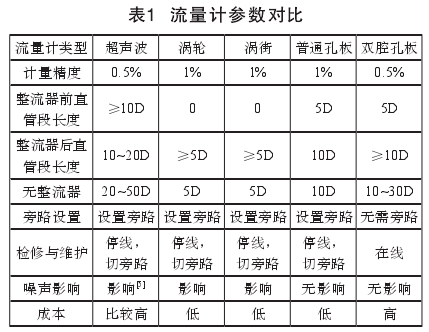 現将上(shang)述流量計(ji)的各項參(can)數做對比(bi),如表1所示(shi)。其中D爲管(guan)道直徑。