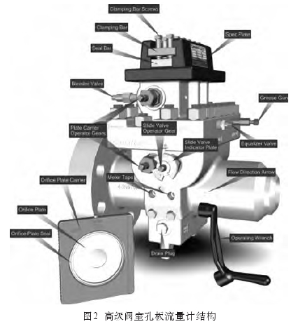 歡腔孔(kong)流量計也(ye)稱高級閥(fa)室孔闆流(liu)量計。其結(jie)構采用上(shang)下腔設計(ji),精确定位(wei)流道中心(xin)的孔闆,根(gen)據API14.3.2(AGA-3)-最新♊版(ban)或ISO5167-1:2003(E)測量并(bing)計⭐算通過(guo)孔闆的天(tian)然氣流量(liang)。真正的雙(shuang)腔是指無(wu)論孔闆在(zai)下腔或上(shang)腔中的位(wei)置如何,上(shang)腔和下腔(qiang)都始終通(tong)過隔離杆(gan)、閥♌、機構進(jin)行隔離。爲(wei)了拆卸或(huo)檢查孔👌闆(pan),闆載體組(zu)件應通過(guo)一個不上(shang)升的升降(jiang)螺釘和齒(chi)輪将孔闆(pan)托架組件(jian)收回到上(shang)腔。其結構(gou)圖如圖2所(suo)示。