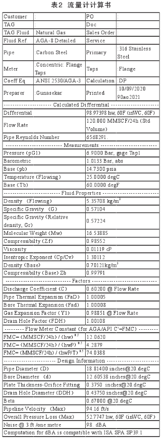 調壓計量(liang)站的流量(liang)計計算書(shu)如表2所示(shi)。