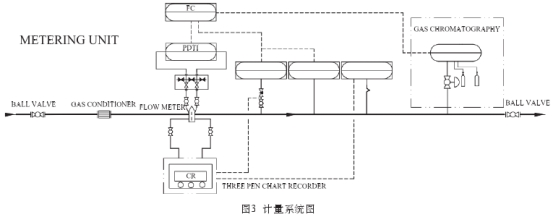 系統(tong)投入運行(hang)前,主管道(dao)的前、後隔(ge)斷球閥全(quan)打開😄,雙🔞腔(qiang)孔🙇‍♀️闆⛷️流量(liang)計的取樣(yang)隔斷球閥(fa)、 五閥組 隔(ge)斷閥、絕壓(ya)變送器的(de)隔斷閥以(yi)反在線色(se)譜儀的取(qu)😄樣閥全打(da)開。系統投(tou)入運行後(hou),天然氣通(tong)過整流器(qi)将管道内(nei)的氣流變(bian)爲規則流(liu)動氣流,平(ping)穩流經閥(fa)室孔闆流(liu)量計。流量(liang)🔞計配套的(de) 差壓變送(song)器 信号、絕(jue)壓變送器(qi)信号、溫度(du)變送器信(xin)号通過硬(ying)接線接入(ru)流量計算(suan)機,同時在(zai)線色譜的(de)天然氣組(zu)分、熱值等(deng)數據通🤞過(guo)RS485通信線接(jie)入流量計(ji)算機,由流(liu)量計算機(ji)顯示并‼️輸(shu)出天然氣(qi)的管道工(gong)藝參數、瞬(shun)時流量、累(lei)計流量等(deng)數值。另外(wai),由機械件(jian)構成的三(san)筆💯記錄儀(yi)通過差壓(ya)、壓力取樣(yang)管線和溫(wen)度傳感器(qi),同時在專(zhuan)用記錄紙(zhi)上記錄差(cha)壓、壓力、溫(wen)度信号,作(zuo)爲流量計(ji)算機的備(bei)🈲用計量手(shou)段。計量系(xi)統圖如圖(tu)3所示。