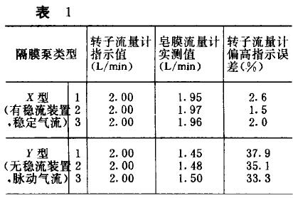 圖3是(shi)用隔(ge)膜泵(beng)作抽(chou)氣裝(zhuang)置并(bing)用轉(zhuan)子流(liu)量計(ji)測量(liang)流量(liang)時,檢(jian)測進(jin)入采(cai)樣裝(zhuang)置的(de)有效(xiao)流量(liang)是否(fou)與轉(zhuan)子流(liu)量計(ji)的指(zhi)示流(liu)量一(yi)緻的(de)氣路(lu)連接(jie)圖。在(zai)采樣(yang)裝置(zhi)的入(ru)口端(duan)連接(jie)一隻(zhi)皂膜(mo)式流(liu)量計(ji),以檢(jian)測進(jin)💘入采(cai)樣裝(zhuang)🐪置的(de)實際(ji)有效(xiao)流量(liang)。檢測(ce)中發(fa)現,如(ru)果隔(ge)膜泵(beng)裝有(you)穩流(liu)裝置(zhi).其抽(chou)吸氣(qi)流是(shi)無脈(mo)動的(de)穩定(ding)氣流(liu),轉子(zi)流🧡量(liang)計的(de)指示(shi)流量(liang)與皂(zao)膜流(liu)量一(yi)計測(ce)得的(de)實際(ji)⭕流量(liang)是一(yi)緻的(de)✂️;反之(zhi),轉子(zi)流量(liang)計總(zong)是指(zhi)示偏(pian)高。表(biao)1是用(yong)兩種(zhong)隔膜(mo)泵抽(chou)氣時(shi),轉❄️子(zi)🧑🏽🤝🧑🏻流量(liang)計的(de)指示(shi)流量(liang)與實(shi)際流(liu)量的(de)對比(bi)。可見(jian),用轉(zhuan)子流(liu)量計(ji)測定(ding)脈動(dong)氣流(liu)流量(liang)時,其(qi)偏高(gao)指示(shi)誤差(cha)幾乎(hu)可達(da)40%。因此(ci),用可(ke)能引(yin)起氣(qi)流脈(mo)動的(de)抽氣(qi)泵作(zuo)抽氣(qi)裝置(zhi)時,應(ying)對抽(chou)吸氣(qi)流采(cai)取穩(wen)流措(cuo)施(例(li)如在(zai)泵體(ti)或氣(qi)路中(zhong)配置(zhi)緩沖(chong)室),使(shi)抽吸(xi)的氣(qi)流變(bian)爲穩(wen)♻️定氣(qi)流以(yi)後,才(cai)能用(yong)轉子(zi)流量(liang)🎯計測(ce)量,這(zhe)首先(xian)是抽(chou)氣泵(beng)的設(she)♌計者(zhe)應注(zhu)意的(de)問題(ti)。另一(yi)方面(mian),轉子(zi)流量(liang)計的(de)使用(yong)者也(ye)要注(zhu)意判(pan)别,不(bu)要以(yi)爲不(bu)管什(shi)麽氣(qi)👣流,隻(zhi)要接(jie)上轉(zhuan)子流(liu)量計(ji)就一(yi)定能(neng)測得(de)真實(shi)的流(liu)量。
