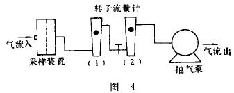 如(ru)圖1所(suo)示,要(yao)測定(ding)氣路(lu)中流(liu)經某(mou)一裝(zhuang)置(比(bi)如粉(fen)塵采(cai)樣器(qi))的空(kong)氣流(liu)量大(da)小,可(ke)在該(gai)裝置(zhi)與抽(chou)氣泵(beng)之間(jian)串接(jie)一隻(zhi)轉子(zi)流量(liang)計。爲(wei)了控(kong)制和(he)調節(jie)流量(liang),同時(shi)還在(zai)氣路(lu)中串(chuan)接一(yi)隻流(liu)量調(diao)節閥(fa)門。抽(chou)氣泵(beng)抽吸(xi)的空(kong)氣(氣(qi)體)流(liu)量大(da)小🈲由(you)轉子(zi)流量(liang)計直(zhi)接指(zhi)示。