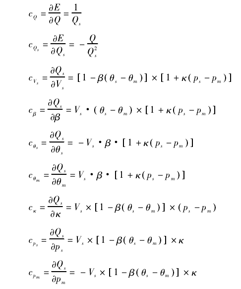 由測(ce)量模型(xing)求得靈(ling)敏系數(shu):