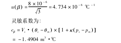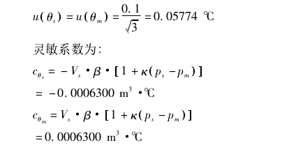 檢測(ce)液體爲(wei)清潔水(shui),由于試(shi)驗時的(de)水溫變(bian)化不.超(chao)過±0.5℃。經查(cha)相關手(shou)冊,可得(de)檢測液(ye)體的體(ti)膨脹系(xi)數的變(bian)化量±8x10-6℃-1。按(an)均勻分(fen)布計算(suan),則: