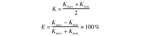 式(shi)中:K爲平(ping)均流量(liang)系數;E爲(wei)渦輪流(liu)量計最(zui)大示值(zhi).誤差;Kmax爲(wei)流量範(fan)圍内各(ge)檢定點(dian)得到的(de)系數中(zhong)最大值(zhi);Kmix爲流量(liang)範圍内(nei)各檢👨❤️👨定(ding)點得到(dao)的系數(shu)中最小(xiao)值。