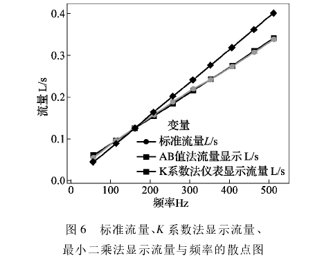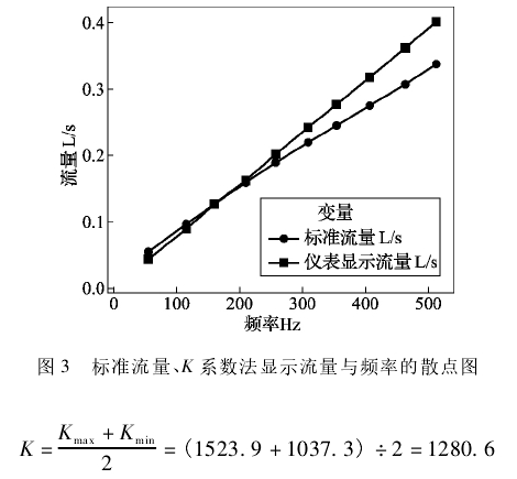 1)使用(yong)K系數法(fa)結果如(ru)表1所示(shi),标準流(liu)量、K系數(shu)法實際(ji)顯🚶♀️示流(liu)量與頻(pin)率的散(san)點圖如(ru)圖3所示(shi)。