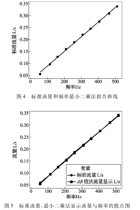 圖(tu)5是标準(zhun)流量、最(zui)小二乘(cheng)法實際(ji)顯示流(liu)量與頻(pin)率的🥰散(san)點圖,從(cong)圖.上可(ke)以看出(chu),根據儀(yi)表最小(xiao)二乘法(fa)設置A、B後(hou),實✉️際使(shi)用時流(liu)量顯示(shi)與标準(zhun)流量之(zhi)間差異(yi)很小,說(shuo)明該方(fang)法測量(liang)結果偏(pian)離真實(shi)結果較(jiao)小,也就(jiu)是測🧑🏾🤝🧑🏼量(liang)誤差較(jiao)🏃♂️小。