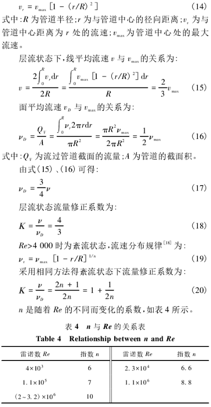 由式(shi)(24)可知(zhi),層流(liu)時的(de)修正(zheng)系數(shu)K=4/3,但對(dui)大管(guan)徑來(lai)說,場(chang)内流(liu)态一(yi)般⭐是(shi)紊流(liu)情況(kuang)。因此(ci),本文(wen)重點(dian)分析(xi)紊流(liu)時的(de)流量(liang)系數(shu)K的修(xiu)正。