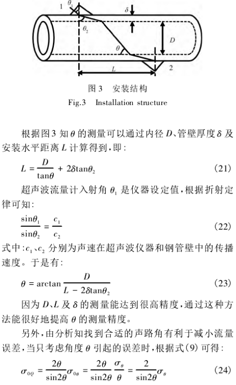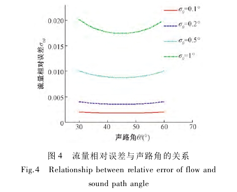 由式(shi)(6)可知(zhi),當聲(sheng)路角(jiao)測量(liang)存在(zai)誤差(cha)σθ時,流(liu)量相(xiang)對誤(wu)差爲(wei):