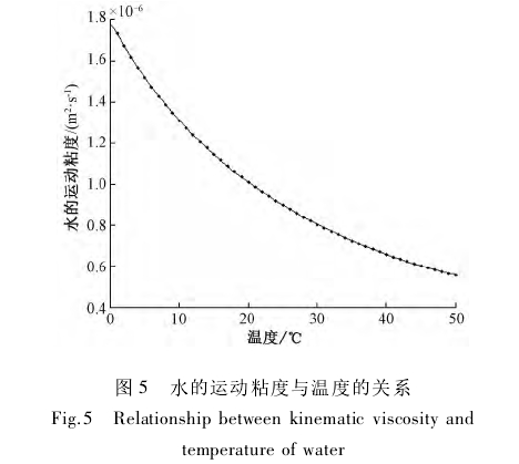 流體(ti)粘度(du)受流(liu)體溫(wen)度的(de)影響(xiang)具有(you)非線(xian)性特(te)點,通(tong)過🔞拟(ni)合溫(wen)度♌與(yu)運動(dong)粘度(du)值,得(de)到不(bu)同溫(wen)度下(xia)水的(de)運動(dong)✨粘度(du)的曲(qu)🙇🏻線,如(ru)圖5所(suo)🏃♀️示。