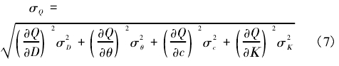 式(shi)中:σx表(biao)示變(bian)量{D,θ,c,K}的(de)絕對(dui)誤差(cha)。