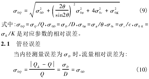 管(guan)徑測(ce)量精(jing)度一(yi)般能(neng)達到(dao)0.1%,按相(xiang)關倍(bei)數取(qu)值得(de)到不(bu)同管(guan)徑誤(wu)差σ0D時(shi)的流(liu)量誤(wu)差如(ru)表1所(suo)示。