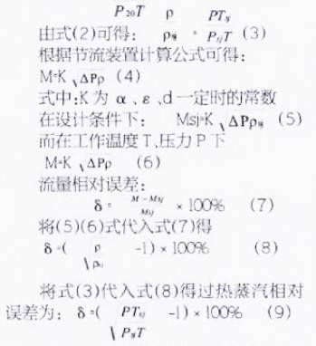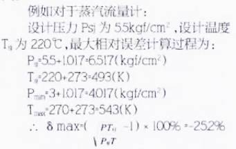 過(guo)熱蒸(zheng)汽用(yong)量季(ji)節性(xing)變化(hua)很大(da),因而(er)工作(zuo)壓力(li)和工(gong)作溫(wen)❄️度也(ye)有相(xiang)應波(bo)動,壓(ya)力在(zai)7kg/cm2-3kg/cm2之間(jian)變化(hua),溫度(du)在🈚270℃-200℃之(zhi)間變(bian)化。由(you)于密(mi)度與(yu)壓力(li)成正(zheng)比,與(yu)溫度(du)成反(fan)比,所(suo)以經(jing)計算(suan)分析(xi),當壓(ya)力低(di)至3kg/cm2,溫(wen)度高(gao)至270℃時(shi),其密(mi)度變(bian)化最(zui)大,因(yin)而其(qi)相對(dui)誤差(cha)最大(da)。