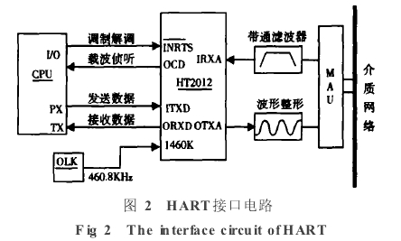 HT2012芯片用來(lai)實現HART協議(yi)中通訊信(xin)号的解調(diao)及調制過(guo)程.圖2爲調(diao)☁️制解調器(qi)與微處理(li)器的連接(jie).