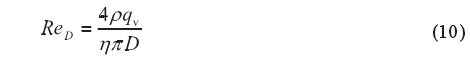 式中(zhong):qv一管道内(nei)體積流量(liang),m³/h;p一介質密(mi)度,kg/m³;η-介質動(dong)力粘度,Pa.s;D-管(guan)道☁️直徑,m。