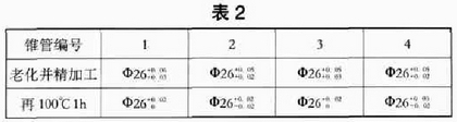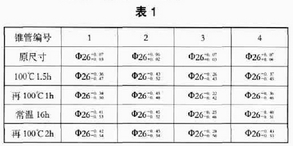 從(cong)試驗結(jie)果可以(yi)看到,在(zai)第1次進(jin)行100℃、1.5h的溫(wen)度試驗(yan)後,錐管(guan)🏃🏻直管段(duan)的尺寸(cun)就已經(jing)變小了(le),冷卻到(dao)常溫時(shi),尺寸并(bing)沒有恢(hui)複;再進(jin)行☔第2次(ci)溫度試(shi)驗時,錐(zhui)管尺寸(cun)的變化(hua)已經不(bu)大,因此(ci)可将錐(zhui)管先粗(cu)加工,接(jie)着進行(hang)老化試(shi)驗,最後(hou)再精加(jia)工,這樣(yang)零件✉️尺(chi)寸受溫(wen)度的影(ying)響應該(gai)很小。爲(wei)了證實(shi)這一點(dian),重新進(jin)行溫🔴度(du)試驗,試(shi)驗情況(kuang)如表2所(suo)示。