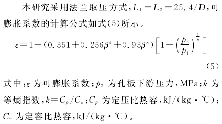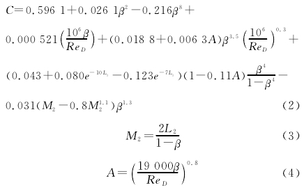 式中:ReD管(guan)徑爲雷(lei)諾數;L1爲(wei)孔闆上(shang)遊端面(mian)到取壓(ya)孔軸線(xian)的距離(li)♍除以測(ce)量管内(nei)徑得出(chu)的商;L2爲(wei)孔闆下(xia)遊端面(mian)㊙️到取壓(ya)孔軸線(xian)的距離(li)除以測(ce)量管内(nei)徑得出(chu)的商;M2爲(wei)變量;A爲(wei)變量。