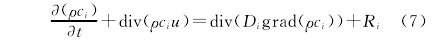 式(shi)中:ρ爲密(mi)度,kg/m³;ci爲i組(zu)分的體(ti)積分數(shu);t爲時間(jian),s;u爲速度(du),m/s;Di爲i組分(fen)♋的擴散(san)系數,m²/s;Ri爲(wei)單位時(shi)間、體積(ji)下産生(sheng)i組分的(de)👉質量,kg/(m³.s)。