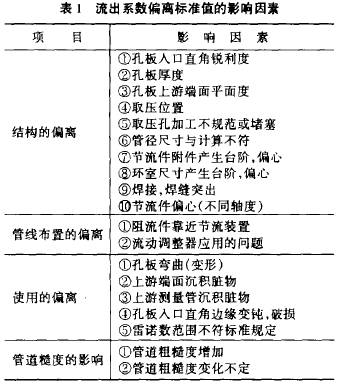 孔闆(pan)流量(liang)計幹(gan)校後(hou)在現(xian)場使(shi)用時(shi)其流(liu)出系(xi)數可(ke)能偏(pian)離标(biao)準值(zhi)的影(ying)響因(yin)素如(ru)表l所(suo)示。