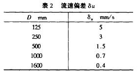 如管(guan)徑爲(wei)DN125時,測(ce)量誤(wu)差爲(wei)1%,則下(xia)限流(liu)速可(ke)達:Umin=100×5=500mm/s =0.5 m/s;管(guan)徑爲(wei)🆚DN1600時,測(ce)量誤(wu)差爲(wei)l%,則下(xia)限流(liu)速可(ke)達:Umin =l00×0.4=40mm/s=0.04m/s.