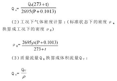 (1)标準(zhun)狀态下(xia)的體積(ji)流量Qn換(huan)成工況(kuang)狀态下(xia)的體積(ji)流量Qv: