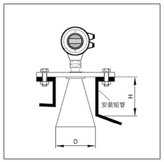 如(ru)果喇叭(ba)直徑大(da)于安裝(zhuang)短管的(de)直徑,包(bao)括延伸(shen)管在内(nei)的天線(xian)需要從(cong)容器裏(li)面安裝(zhuang),并将儀(yi)表擡高(gao)。選擇延(yan)伸🐇管使(shi)儀表至(zhi)少🌈擡高(gao)100mm。