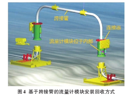 當采(cai)油樹沒(mei)有可以(yi)回收的(de)油嘴模(mo)塊,或是(shi)節流閥(fa)等相應(ying)結構不(bu)允許相(xiang)應布置(zhi)時,水下(xia)流量計(ji)可以安(an)裝在采(cai)油樹同(tong)管彙連(lian)接的跨(kua)接管上(shang)。如圖4所(suo)示🔴,位于(yu)跨接管(guan)的流量(liang)計可以(yi)在跨接(jie)管制造(zao)和初安(an)裝時采(cai)用法蘭(lan)進行連(lian)接,将流(liu)量計模(mo)塊和跨(kua)接管😍一(yi)起下放(fang)安裝和(he)回收。法(fa)蘭連接(jie)的流😍量(liang)計接口(kou)可以簡(jian)化拆卸(xie)和重裝(zhuang),也可以(yi)采用焊(han)接的方(fang)式,将流(liu)量計直(zhi)接焊接(jie)在跨接(jie)管上以(yi)減輕跨(kua)接管的(de)重量。但(dan)🏒由于跨(kua)接管的(de)安♌裝回(hui)收需要(yao)吊裝能(neng)力較大(da)的支持(chi)船,并可(ke)能導緻(zhi)其他一(yi)些問題(ti),所以一(yi)般😘在跨(kua)✌️接管上(shang)的流量(liang)計🏃♂️出現(xian)問題,基(ji)本就會(hui)棄置而(er)不進行(hang)維護。由(you)于水下(xia)流量計(ji)電子模(mo)塊出現(xian)故障.的(de)概💞率比(bi)🧑🏾🤝🧑🏼較大,若(ruo)采取這(zhe)種方式(shi)進行安(an)裝回收(shou),一般會(hui)設計電(dian)子♈模塊(kuai)可回收(shou)的結構(gou),将流量(liang)計上容(rong)易發生(sheng)失效的(de)複雜結(jie)構都集(ji)成在可(ke)回收模(mo)塊中,而(er)固✨定安(an)裝的部(bu)分則應(ying)⛱️該盡量(liang)簡化,以(yi)提⛷️高整(zheng)個裝置(zhi)的可靠(kao)性。