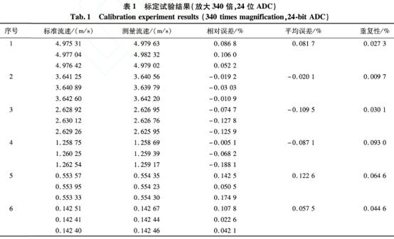 爲了測試(shi)基于自适(shi)應極化噪(zao)聲抵消方(fang)法的信号(hao)調理電路(lu)2的實際效(xiao)果,進行了(le)容積法水(shui)流量标定(ding)試驗。标定(ding)試驗中,在(zai)流速🐕爲0.15~5m/s的(de)範圍内,共(gong)選取了6個(ge)标定點,并(bing)通過示值(zhi)誤差拟合(he)♊方法計算(suan)儀表系數(shu)"],然後驗證(zheng)了電磁流(liu)量計的精(jing)度。放大340倍(bei)24位ADC水流量(liang)标定試驗(yan)結果如表(biao)1所示。