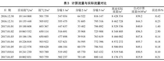爲了(le)驗證提(ti)出方法(fa)的可靠(kao)性,查找(zhao)該站壓(ya)縮機2025年(nian)11月份到(dao)2017年🧑🏽🤝🧑🏻1月份(fen)的運行(hang)數據。在(zai)此期間(jian),西門子(zi)壓縮♈機(ji)及🐇相關(guan)輔助⛹🏻♀️設(she)備運行(hang)穩定,且(qie)工況點(dian)易于确(que)定。場站(zhan)的實際(ji)流量通(tong)過接氣(qi)的總流(liu)量減去(qu)各分輸(shu)站的支(zhi)路流量(liang)所得✍️5]。将(jiang)計算所(suo)得流量(liang)與實際(ji)流量進(jin)行對比(bi)見🈲表3。