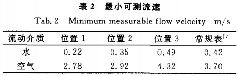 渦街(jie)流量(liang)計測(ce)量下(xia)限的(de)拓展(zhan)一直(zhi)是研(yan)究的(de)熱點(dian).各種(zhong)情況(kuang)的最(zui)小可(ke)測流(liu)速及(ji)常規(gui)渦街(jie)流量(liang)計的(de)測量(liang)下限(xian)列于(yu)表2.在(zai)實驗(yan)中,越(yue)靠近(jin)發生(sheng)體,旋(xuan)渦的(de)旋度(du)強,測(ce)量的(de)靈敏(min)度高(gao),不論(lun)是水(shui)還是(shi)空氣(qi),最小(xiao)可測(ce)流量(liang)都是(shi)随取(qu)壓位(wei)置的(de)後移(yi)而增(zeng)大.當(dang)測量(liang)水時(shi),位置(zhi)1的測(ce)量下(xia)限僅(jin)爲常(chang)規表(biao)的52%;當(dang)測量(liang)空氣(qi)時,位(wei)置1的(de)測量(liang)下限(xian)爲常(chang)規表(biao)的75%,因(yin)此采(cai)用管(guan)壁差(cha)壓法(fa)能有(you)效地(di)降低(di)渦街(jie)流量(liang)計的(de)測量(liang)下限(xian),将取(qu)壓位(wei)置适(shi)當靠(kao)近發(fa)生體(ti)能進(jin)一步(bu)降低(di)測量(liang)下限(xian).