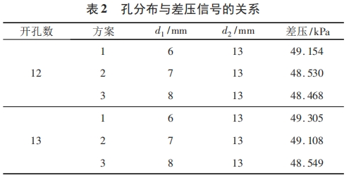孔(kong)的分布與(yu)差壓信号(hao)關系如表(biao)2所示。
