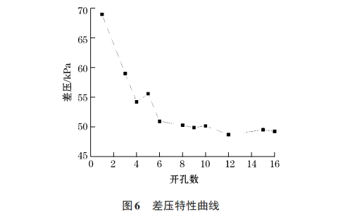 給定的速(su)度入口的(de)初始速度(du)爲1m/s。對一段(duan)長爲1.2m(等于(yu)前後直管(guan)段長度24D)的(de)直管道進(jin)行模拟仿(pang)真,參數設(she)💘置以及湍(tuan)流模型的(de)選擇與上(shang)述模拟相(xiang)同,結果可(ke)得直管段(duan)的沿📐程壓(ya)力損失爲(wei)📞314Pa。由,上述仿(pang)真計算結(jie)果的進出(chu)口壓力差(cha)減去直管(guan)道的沿程(cheng)壓力損失(shi),即可得到(dao)節流前後(hou)的差壓。開(kai)孔數量和(he)差壓的關(guan)💚系如圖6所(suo)示,開孔數(shu)量和差壓(ya)信号的關(guan)系如表1所(suo)示。