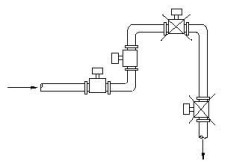 若管(guan)道落差超(chao)過5m,在流量(liang)計的下遊(you)安裝排氣(qi)閥