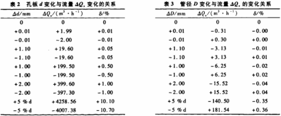 節(jie)流裝(zhuang)置在(zai)加工(gong)制造(zao)過程(cheng)中總(zong)是存(cun)在一(yi)些偏(pian)差,或(huo)😄使用(yong)過程(cheng)中孔(kong)闆的(de)磨損(sun)”。其中(zhong)與流(liu)量測(ce)量精(jing)确度(du)密⭕切(qie)相關(guan)的有(you)節流(liu)件開(kai)孔直(zhi)徑d和(he)靠近(jin)節流(liu)裝置(zhi)的直(zhi)管段(duan)内徑(jing)D。當d和(he)D實際(ji)尺寸(cun)偏離(li)設計(ji)尺寸(cun)後,造(zao)成的(de)後果(guo)就是(shi)流💚量(liang)測量(liang)系統(tong)的滿(man)度值(zhi)産生(sheng)了變(bian)化,見(jian)表2和(he)🔞表3。如(ru)果将(jiang)d和👄D的(de)實際(ji)值測(ce)量出(chu)來,然(ran)後🆚代(dai)人公(gong)式計(ji)算☁️出(chu)與此(ci)實際(ji)值相(xiang)對應(ying)的流(liu)量滿(man)度值(zhi),然後(hou)用🤞新(xin)的滿(man)👌度值(zhi)代替(ti)原設(she)計值(zhi),置人(ren)流量(liang)顯示(shi)儀表(biao),則系(xi)統運(yun)行後(hou)尺寸(cun)誤差(cha)對測(ce)量系(xi)統的(de)影響(xiang)就得(de)到了(le)完全(quan)的校(xiao)正。.