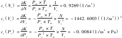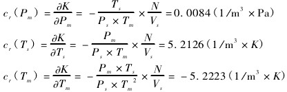 1前言(yan) 測量依(yi)據:依據(ju)檢定規(gui)程JJG1029-2007《渦街(jie)流量計(ji)》。環境條(tiao)件:應符(fu)合規程(cheng)要求:環(huan)境溫度(du)爲(5~45)℃,相對(dui)濕度一(yi)🔱般爲🐪35%~95%,大(da)氣壓力(li)一般爲(wei)(86~106)kPa。 測量标(biao)準器:臨(lin)界流音(yin)速噴嘴(zui)氣體流(liu)量标準(zhun)裝置🔞,Ur=0.30%(k=2);壓(ya)力變送(song)器,Urel=0.2%(k=2);溫度(du)變送器(qi),Urel=0.3K(k=2)。 被測對(dui)象:渦街(jie)流量計(ji),精度等(deng)級1.5級。 測(ce)量介質(zhi):空氣。 測(ce)量過程(cheng):将臨界(jie)流音速(su)噴嘴氣(qi)體流量(liang)标準裝(zhuang)置流量(liang)值🌈調㊙️整(zheng)㊙️到指定(ding)數值,保(bao)持流體(ti)穩定一(yi)段時間(jian);檢定開(kai)始記錄(lu)标準裝(zhuang)置和被(bei)檢流量(liang)計的初(chu)始值❄️;檢(jian)定結束(shu)後記錄(lu)标準裝(zhuang)置和被(bei)檢流🚩量(liang)計的最(zui)終示值(zhi)。 2測量的(de)數學模(mo)型 式中(zhong),Ki—第i個測(ce)量點測(ce)得的儀(yi)表系數(shu),單位爲(wei)1/m3; Ni—第i個測(ce)量點測(ce)得的流(liu)量計的(de)脈沖數(shu); Vsi—第i個測(ce)量點由(you)裝置測(ce)得的修(xiu)正到被(bei)測流量(liang)計處的(de)實際氣(qi)體體積(ji)值,單位(wei)爲m3; 将Vsi換(huan)算爲被(bei)測流量(liang)計入口(kou)狀态下(xia)的數學(xue)模型爲(wei): 式中,Pn—測(ce)量時的(de)當地實(shi)驗室氣(qi)體壓力(li),Pa; Psi,Pmi—分别爲(wei)第i點測(ce)量時标(biao)準器處(chu)和被測(ce)流量計(ji)處氣🏒體(ti)壓力,單(dan)位✊爲Pa; Tsi,tmi—分(fen)别爲第(di)i點測量(liang)時标準(zhun)器處和(he)被測流(liu)量計處(chu)氣體溫(wen)度,單位(wei)🧑🏾🤝🧑🏼爲℃; zsi,zmi—分别(bie)爲第i點(dian)測量時(shi)标準器(qi)處和被(bei)測流量(liang)計處氣(qi)體壓🍉縮(suo)系數,取(qu)zsi≈zmi,則 3各輸(shu)入量的(de)标準不(bu)确定度(du)評定 3.1氣(qi)體流量(liang)計測量(liang)重複性(xing)引入的(de)不确定(ding)度分量(liang)ur(Nr)評定輸(shu)入量Ni(單(dan)次測量(liang)脈沖數(shu))的不确(que)定度來(lai)源主要(yao)是渦街(jie)流量計(ji)的測量(liang)重複👅性(xing)引入的(de)‼️,選取工(gong)況流量(liang)爲70m3/h,在重(zhong)複🧑🏽🤝🧑🏻條件(jian)下重複(fu)測量6次(ci),得到脈(mo)沖數Ni如(ru)下表:(采(cai)用A類方(fang)法進行(hang)評定) 3.2臨(lin)界流音(yin)速噴嘴(zui)氣體流(liu)量标準(zhun)裝置引(yin)入的不(bu)确定🈚分(fen)量ur(Vs)的評(ping)定 臨界(jie)流音速(su)噴嘴氣(qi)體流量(liang)标準裝(zhuang)置向上(shang)級計量(liang)機構❌溯(su)源,由證(zheng)書可知(zhi)标準裝(zhuang)置的不(bu)确定度(du)Ur=0.30%(k=2),則由🌂臨(lin)界流音(yin)速噴嘴(zui)氣體流(liu)量标準(zhun)裝置引(yin)入的測(ce)量點爲(wei)70m3/h的實際(ji)流體體(ti)積累積(ji)量(平均(jun)值)爲珔(jian)Vs=1.083m3時的絕(jue)對不确(que)定度ur(Vs)=1.083m3*0.30%/2=0.001625m3 3.3音(yin)速噴嘴(zui)氣體流(liu)量标準(zhun)裝置内(nei)壓力測(ce)量引入(ru)的不确(que)💜定度ur(Ps)的(de)評定 音(yin)速噴嘴(zui)氣體流(liu)量标準(zhun)裝置内(nei)壓力是(shi)由分别(bie)裝在噴(pen)😘嘴🧑🏽🤝🧑🏻底部(bu)和頂部(bu)的2台測(ce)量範圍(wei)爲(0~150)kPa的壓(ya)力變送(song)器進行(hang)測♊量後(hou)⭕取平均(jun)值得到(dao)的,由溯(su)源證書(shu)可知,其(qi)測量⚽結(jie)果的不(bu)确定度(du)分别爲(wei):頂部Urel=0.2%,k=2;底(di)部Urel=0.2%,k=2;由于(yu)兩🤩台壓(ya)力變送(song)器分别(bie)🍉在噴嘴(zui)的頂部(bu)和底部(bu),互不相(xiang)關,互相(xiang)獨立,因(yin)此相對(dui)不确定(ding)度爲:up1=up2=0.2%/2=0.1%;ur(ps)==0.1414%;則(ze),測量點(dian)70m3/h時的标(biao)準裝置(zhi)内壓力(li)變送器(qi)的實際(ji)大氣壓(ya)📐(平🏃♀️均值(zhi))爲Ps=91862Pa時的(de)絕對不(bu)确定度(du)爲: 0.1414%*91862Pa=129.9125Pa; 3.4被檢(jian)流量計(ji)處壓力(li)測量引(yin)入的不(bu)确定度(du)ur(Pm)的評定(ding) 用于被(bei)檢流量(liang)計處壓(ya)力變送(song)器測量(liang)範圍爲(wei)(0~150)kPa,由溯源(yuan)證👄書可(ke)知📐,Urel=0.2%,k=2,因此(ci)Pm的相對(dui)标準不(bu)确定度(du)爲:ur(Pm)=0.2%/2=0.1%;則測(ce)量點65m3/h時(shi)的流量(liang)計處的(de)壓力⁉️變(bian)送器的(de)實際大(da)氣壓(平(ping)😄均值)爲(wei)時的絕(jue)對不确(que)定度爲(wei)Pm=92227.3Pa時的絕(jue)♊對不确(que)定度爲(wei):0.1%*92227.3Pa=92.2273Pa; 3.5音速噴(pen)嘴氣體(ti)流量标(biao)準裝置(zhi)内溫度(du)測量引(yin)入的不(bu)确定度(du)ur(ts)的評定(ding) 音速噴(pen)嘴氣體(ti)流量标(biao)準裝置(zhi)内的溫(wen)度變送(song)器測量(liang)範圍爲(wei)(0~50)℃,由🔴溯源(yuan)證書可(ke)知,其測(ce)量結果(guo)的不确(que)定✂️度爲(wei)U=0.3K,k=2,則由标(biao)準裝置(zhi)溫度引(yin)入的絕(jue)對不确(que)定度爲(wei): 3.6被檢流(liu)量計處(chu)溫度測(ce)量引入(ru)的不确(que)定度ur(tm)的(de)評定 被(bei)測流量(liang)計處的(de)溫度變(bian)送器測(ce)量範圍(wei)爲(0~50)℃,由溯(su)源證書(shu)可知,其(qi)測量結(jie)果的不(bu)确定度(du)爲U=0.3K,k=2,則由(you)被測流(liu)量計🐪處(chu)溫度引(yin)入的絕(jue)對不确(que)定度爲(wei): 4合成标(biao)準不确(que)定度評(ping)定 4.1靈敏(min)系數 取(qu):K=1422.91/m3,N=1662.167,Vs=1.083m3,Pn=92600Pa,Ps=91862Pa,Pm=92227.3Pa,ts=22.417℃,tm=21.869℃ 令:Ps=Pn+Ps;Pm=Pn+Pm;Tm=273.15k+tm;Ts=273.15k+ts; Ps=92600+91862=184462Pa,Pm=92600+92227.3=184827.3Pa; Tm=273.15+21.869=295.019k,Ts=273.15+22.417=295.567k; 則各(ge)靈敏系(xi)數爲: 4.2标(biao)準不确(que)