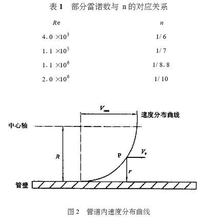 式中(zhong):vp爲到管(guan)壁距離(li)爲y的P點(dian)的速度(du);y爲點到(dao)管壁處(chu)的距離(li);Vmax:爲管道(dao)中的最(zui)大流速(su),通常取(qu)管道中(zhong)心的速(su)度;R爲管(guan)道的半(ban)徑;n爲雷(lei)🌈諾數的(de)函數。