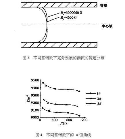 圖(tu)3給出了(le)不同雷(lei)諾數下(xia)充分發(fa)展的湍(tuan)流的流(liu)速分布(bu),如圖🆚所(suo)示Re越大(da),流速分(fen)布越平(ping)滑,即旋(xuan)渦發生(sheng)體附近(jin)的流速(su)🈲越接近(jin)平均流(liu)速,故ƒ( Re)應(ying)爲單調(diao)遞減函(han)數。圖4給(gei)出了3台(tai)50mm口徑,寬(kuan)度14 mm三角(jiao)形旋渦(wo)發生體(ti)的氣體(ti)渦銜流(liu)量計,在(zai)20℃,一個标(biao)準大氣(qi)壓下,不(bu)同雷諾(nuo)數下的(de)K值曲線(xian)。如圖所(suo)示實驗(yan)數據與(yu)理論分(fen)析基🎯本(ben)一緻,因(yin)此渦銜(xian)流量計(ji)的測💔量(liang)原理即(ji)決定了(le)儀表系(xi)數的非(fei)線性特(te)性。若要(yao)提高渦(wo)街流量(liang)計的計(ji)量㊙️精度(du),必須針(zhen)對不✊同(tong)的流速(su)分布對(dui)K值進行(hang)修正。