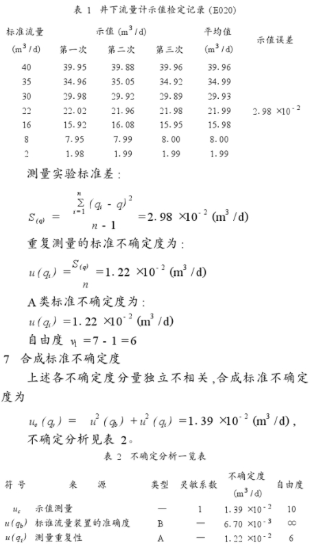 本(ben)次井下(xia)流量計(ji)示值測(ce)量結果(guo)的擴展(zhan)不确定(ding):
