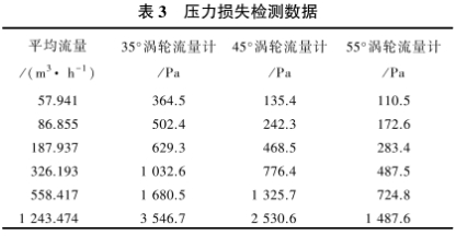 表3列(lie)出了安裝(zhuang)3種不同螺(luo)旋角渦輪(lun)流量計在(zai)儀表⭐取壓(ya)口處的壓(ya)力損失。