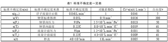 【摘要】浮子(zi)流量計 是(shi)一種常用(yong)的可變截(jie)面式壓差(cha)流量計量(liang)裝置,結構(gou)簡😄單、成本(ben)低、工作可(ke)靠性高,可(ke)測量流量(liang)小和節流(liu)壓力損🌐失(shi)小的特㊙️點(dian),因⛷️此,在石(shi)油、煤炭、冶(ye)金、輕化工(gong)業、食品衛(wei)生等工業(ye)領域中廣(guang)泛應用。本(ben)文介紹了(le)浮子流量(liang)計的應用(yong),以及示值(zhi)誤差的測(ce)量不确定(ding)度。測量不(bu)确定度是(shi)一種對測(ce)量結果可(ke)信程度的(de)表示方式(shi),文🏃♂️章後半(ban)部分講述(shu)了鍾罩式(shi)氣體流量(liang)标準裝置(zhi)檢定浮子(zi)流量計時(shi),其測得值(zhi)的示值誤(wu)差不确定(ding)度評定方(fang)法。依據檢(jian)定規程氣(qi)體流量中(zhong),用容積法(fa)測量浮子(zi)流量計的(de)實際流量(liang),用其示💁值(zhi)誤差的換(huan)算公式建(jian)立測量模(mo)型,分别計(ji)算相關🌏關(guan)系的輸入(ru)量的不确(que)定度⛷️分量(liang),得到合理(li)的評定👌結(jie)果。 引言 浮(fu)子流量汁(zhi)(又稱轉子(zi)流量計)是(shi)一種傳統(tong)的可變面(mian)積式流量(liang)🤟測量裝置(zhi),當流量發(fa)生改變,浮(fu)子在垂直(zhi)錐形管内(nei)上下移動(dong)時,錐管和(he)浮子之間(jian)形成的環(huan)行流通面(mian)積🍉發生改(gai)變,以此原(yuan)理實現對(dui)流量測量(liang)的體積式(shi)流量儀表(biao)。它具有機(ji)械結構簡(jian)單、加工方(fang)便、工作穩(wen)定、可靠性(xing)高及壓力(li)損失小等(deng)優點,尤🥵其(qi)可以測量(liang)低雷諾數(shu)小流量介(jie)質的特點(dian),因此在液(ye)體、氣體的(de)流量測量(liang)和自動控(kong)制系統中(zhong)被廣泛應(ying)用。 浮子流(liu)量計按其(qi)結構形式(shi)可以分爲(wei)兩大類:玻(bo)璃管浮子(zi)流量⛹🏻♀️計,金(jin)屬管浮子(zi)流量計。 玻(bo)璃管浮子(zi)流量計是(shi)實驗室和(he)工業上最(zui)常用的一(yi)種流量計(ji)。其特點在(zai)于結構簡(jian)單、直觀、壓(ya)力損失小(xiao)、維修方便(bian)。玻璃管浮(fu)子流量計(ji)适用于測(ce)量管道直(zhi)徑小于100mm的(de)小流量,使(shi)用該流量(liang)計必須安(an)裝在垂直(zhi)方向的🏒管(guan)道上,流體(ti)介質自👨❤️👨下(xia)而上通過(guo)。 玻璃管浮(fu)子流量計(ji) 的主要測(ce)量元件是(shi)一根垂直(zhi)安裝且上(shang)面大、下面(mian)小的錐形(xing)玻璃管,和(he)一個在内(nei)部可以上(shang)下移動的(de)浮子。當流(liu)體自下而(er)🌈上經過錐(zhui)形玻璃管(guan)時,浮子的(de)上下端之(zhi)間産生壓(ya)差🔞,浮子在(zai)📧此差壓作(zuo)用下上升(sheng)✔️。當浮子所(suo)🔞受差壓力(li)、所受浮力(li)及粘性升(sheng)👈力與浮子(zi)🏃♂️的重力合(he)力爲零時(shi),浮子處于(yu)平衡位置(zhi)。因此,流經(jing)♌玻璃管浮(fu)子流量計(ji)的流體流(liu)🚶♀️量與浮子(zi)上升高度(du),即與流量(liang)計的流通(tong)面積之間(jian)存在✌️着一(yi)定的比例(li)關系,浮子(zi)的位置高(gao)度所在的(de)刻度可🛀作(zuo)爲流量計(ji)示值。 金屬(shu)管浮子流(liu)量計 特點(dian)在于結構(gou)簡單、工作(zuo)可靠、精度(du)高、适用範(fan)圍廣。與玻(bo)璃管浮子(zi)流量計相(xiang)比較,能耐(nai)較高的壓(ya)力。該流量(liang)計具有就(jiu)地指示、電(dian)遠傳、限位(wei)開關報警(jing)、耐腐蝕、夾(jia)套型、阻尼(ni)型和防⭕爆(bao)型等多設(she)計品種。廣(guang)泛應💋用于(yu)國防、化工(gong)、石油、冶金(jin)、電力、環保(bao)、醫藥和輕(qing)工等👨❤️👨行業(ye)的液體、氣(qi)體流量的(de)測量與自(zi)動控制。金(jin)屬管浮子(zi)流量計🔞主(zhu)要由三大(da)基本部分(fen)組成:測量(liang)管體、錐形(xing)浮子、指示(shi)器☁️。浮子的(de)位移量與(yu)流量的大(da)小成比例(li),通過磁耦(ou)合系統,以(yi)不接觸方(fang)式,将浮子(zi)位移🌐量傳(chuan)給指㊙️示器(qi)指示出流(liu)量的大小(xiao);也可裝配(pei)♉不同的轉(zhuan)換器,将流(liu)量值轉換(huan)☀️成标準電(dian)遠傳信号(hao),實現遠距(ju)離顯示、記(ji)錄、積算和(he)控制等功(gong)能。 金屬管(guan)浮子流量(liang)計用于氣(qi)體測量時(shi),制造商需(xu)要以标準(zhun)狀态(20℃、101.325Pa)下的(de)幹空氣作(zuo)爲氣體标(biao)尺分度。如(ru)果✨金屬管(guan)浮子流♍量(liang)計在特殊(shu)壓力下的(de)校準時,氣(qi)體在流量(liang)計的出口(kou)直接排放(fang)到大氣,将(jiang)會在浮子(zi)處♌産生較(jiao)大的壓力(li)損失,引起(qi)數據缺乏(fa)真實。因此(ci)在這樣的(de)工況✉️條件(jian)下,應當在(zai)流量計的(de)❄️出口安裝(zhuang)一個閥門(men),以便對所(suo)需流量值(zhi)進行設定(ding);當浮子上(shang)方維持标(biao)校🚩壓力時(shi)🐅,氣體将🔞在(zai)閥門處膨(peng)脹。測量時(shi)還應保證(zheng)管道壓力(li)不小于5倍(bei)儀表壓力(li)損失,以确(que)保浮子工(gong)作🏃♂️穩定,因(yin)此,一般測(ce)量氣體的(de)儀表配有(you)氣體阻尼(ni)器,以最大(da)限度減小(xiao)浮子震蕩(dang)。 下面介紹(shao)用鍾罩式(shi)氣體流量(liang)标準裝置(zhi)對浮子流(liu)量計開展(zhan)♉檢定時,從(cong)被檢計量(liang)器具重複(fu)性、标準器(qi)引入的不(bu)确定度分(fen)量、氣⛹🏻♀️體流(liu)量溫度及(ji)壓力補償(chang)🛀🏻方面的考(kao)慮,對被檢(jian)浮子流量(liang)♈計進行不(bu)确定度分(fen)析。 1概述 1.1檢(jian)