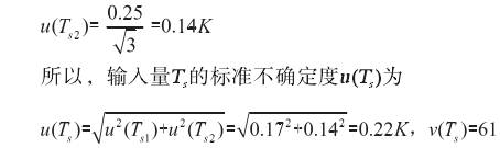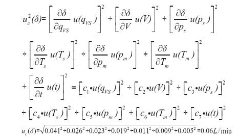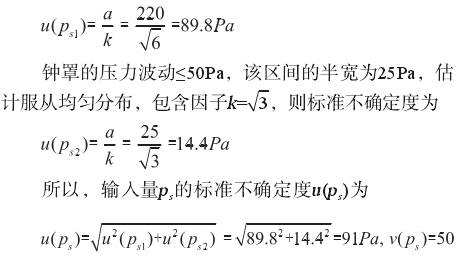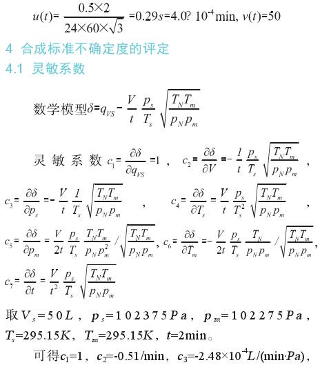 輸(shu)入量V的不(bu)确定度主(zhu)要來源于(yu)鍾罩式氣(qi)體流量标(biao)準裝置的(de)不确定度(du),采用B類方(fang)法進行評(ping)定。0.5級鍾罩(zhao)流量測量(liang)不确定度(du)爲Urel=0.5%,包含因(yin)子k=2,當标準(zhun)容積爲50L時(shi),則标準不(bu)确定度爲(wei) 3.3輸入量ps的(de)标準不确(que)定度u(ps)的評(ping)定 輸入量(liang)ps的不确定(ding)度是由傾(qing)斜式微壓(ya)計和空盒(he)氣壓表的(de)示值🐕誤差(cha)引起的不(bu)确定度u(ps1),由(you)鍾罩的壓(ya)力波動引(yin)起的不🏃🏻确(que)定📐度u(ps2),采用(yong)B類方法進(jin)行評定。 1.0級(ji)傾斜式微(wei)壓計的最(zui)大允許誤(wu)差爲±1.0%,當鍾(zhong)罩内壓力(li)爲2000Pa時,最大(da)🏃示值誤差(cha)爲±20Pa,空盒氣(qi)壓表的最(zui)大允許⛹🏻♀️誤(wu)差爲±200Pa,估計(ji)兩者均服(fu)從🔞均勻分(fen)布,所以傾(qing)斜式微⁉️壓(ya)計和空盒(he)氣🈲壓表的(de)示值誤差(cha)之和應在(zai)±220Pa範圍内服(fu)從三角分(fen)布,包含因(yin)子k=/6,則标準(zhun)不确定度(du)爲 3.4輸入量(liang)Ts的标準不(bu)确定度u(Ts)的(de)評定 輸入(ru)量Ts的不确(que)定度是由(you)溫度計的(de)示值誤差(cha)引起的不(bu)确定度u(Ts1),檢(jian)定過程中(zhong)鍾罩内的(de)氣體溫度(du)波動引起(qi)💋的不确定(ding)度u(Ts2),采用B類(lei)方法進行(hang)評定。 分度(du)值爲0.2℃的工(gong)作用玻璃(li)液體溫度(du)計的最大(da)允許誤🚶♀️差(cha)爲±0.3℃,即爲±0.3K,估(gu)計服從均(jun)勻分布,包(bao)含因子k=/3,所(suo)以,标準不(bu)确定度爲(wei) 鍾罩溫度(du)差控制不(bu)大于0.5℃,區間(jian)半寬爲0.25K,估(gu)計服從均(jun)勻🐇分布,包(bao)含因子k=/3,所(suo)以,标準不(bu)确定度爲(wei) 3.5輸入量pm的(de)标準不确(que)定度u(pm)的評(ping)定 輸入量(liang)pm的不确定(ding)度是由傾(qing)斜式微壓(ya)計、空盒氣(qi)壓表的☎️示(shi)值誤差和(he)鍾罩的壓(ya)力波動引(yin)起的,該項(xiang)評定同3.3,所(suo)以 u(pm)=u(ps)=91Pa,v(pm)=50 3.6輸入量(liang)Tm的标準不(bu)确定度u(Tm)的(de)評定 輸入(ru)量Ts的不确(que)定度是由(you)溫度計的(de)示值誤差(cha)和檢定過(guo)程溫度👈波(bo)動引起的(de),該項評定(ding)同3.4,所以, u(Tm)=0.2K,v(Tm)=61 3.7輸(shu)入量t的标(biao)準不确定(ding)度u(t)的評定(ding) 輸入量t的(de)不确定度(du)是由電子(zi)秒表的示(shi)值誤差引(yin)🏃♂️起的,電子(zi)秒表的最(zui)大允許誤(wu)差爲±0.5s/d,估計(ji)服從均勻(yun)分布㊙️,包含(han)因子k=/3,則标(biao)準不确定(ding)度爲 c4=0.088L/(min·K),c5=1.24×10-4L(min·Pa),c6=-0.043L/(min·K),c7=12.7L/(min·min)。 4.2标準(zhun)不确定度(du)一覽表 見(jian)表1。 4.3合成标(biao)準不确定(ding)度的計算(suan) 輸入量qVS、V、ps、Ts、pm、Tm、t彼(bi)此獨立,所(suo)以合成标(biao)準不确定(ding)度可按下(xia)式計算得(de)😘: 5擴展不确(que)定度的評(ping)定 取包含(han)因子 k=2,擴展(zhan)不确定度(du)爲 U=k×uc(δ)=2×0.06=0.12L/min 相對擴(kuo)展不确定(ding)度爲 6測量(liang)不确定度(du)的報告與(yu)表示 氣體(ti)浮子流量(liang)計在流量(liang)計刻度爲(wei)6L/min,相對擴展(zhan)不确定度(du)爲 Urel=0.5% k=2 7結束語(yu) 以上對被(bei)檢浮子流(liu)量計測量(liang)結果的不(bu)确定度來(lai)🌏源⛷️進🐕行了(le)較爲深入(ru)的分析,可(ke)以作爲以(yi)後浮子流(liu)量計檢定(ding)校準工作(zuo)的參考。