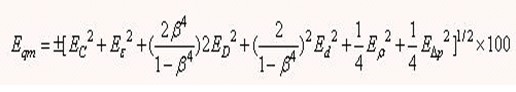 (1)式中(zhong);Eqm-流量相對(dui)不确定度(du),% ;EC,Eε,ED,Ed,Eρ,EΔp-分别爲C,ε,D,d,ρ,Δp的(de)相對不确(que)定度,%;β-直徑(jing)比,無量綱(gang)。