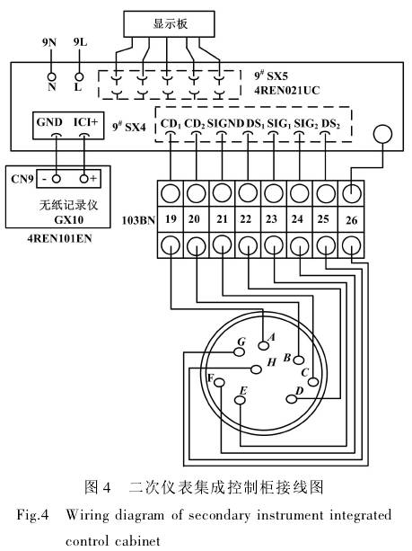 電纜上(shang)連接二次(ci)儀表控制(zhi)櫃的一端(duan),剝出線頭(tou),接✌️入控制(zhi)👄櫃的相應(ying)位置。二次(ci)儀表集成(cheng)控制櫃接(jie)線如圖4所(suo)示。